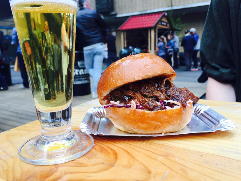 The Big Green Egg’s brandde op volle toeren en elke deelnemer had iets goddelijks voor je in petto. Genoeg vlees voor de carnivoren, dat is een ding dat zeker was. Verschillende BBQ Teams en restaurants van klein tot groot, de beste waren vertegenwoordigd. Met een Brand speciaal biertje in de hand kon de tocht langs de deelnemers beginnen. Wat een keus en wat een originele gerechten. BBQ Team Smokey Goodness trok mijn aandacht met zijn Pulled Beef Brioche broodje (mét rijke bordelaise saus en Jalepeño koolsalade(!) jamjamjam.