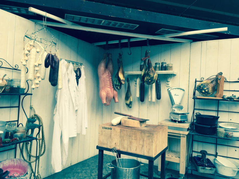 Vanuit mijn ooghoek zag ik een enorm glazen kas waar, vooral, mannen zich verzameld hadden. Bezweette hoofden en blote lijven, want de schort moest aan en de nette kleding uit. “Butchery class middenstuk varken” ging van start. Veel dichterbij heb ik mij niet durven begeven want zo stoer ben ik niet. Maar als je dit wel bent is het natuurlijk super leuk, om even te voelen hoe het is om een echte slager te zijn. Gert Jan Kiers bracht zijn kennis over tijdens deze demonstratie in de kas; de Slagerij van ome Cees.