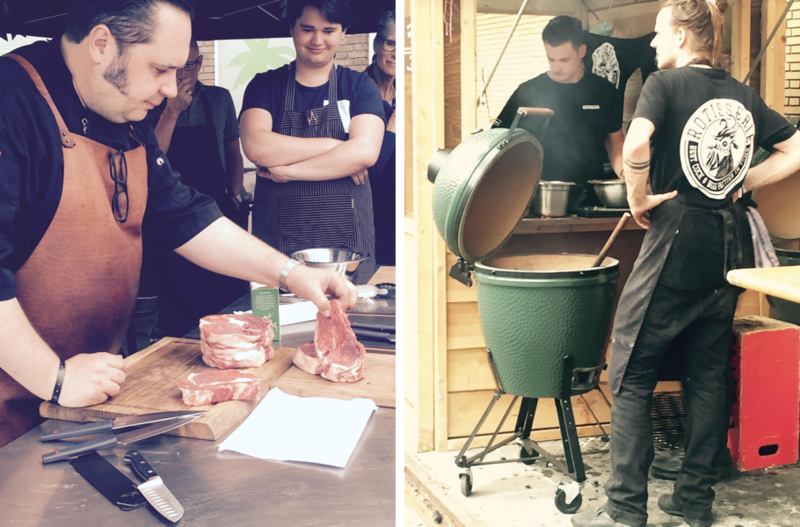 Ook de mannen van Brandt&Levie waren vertegenwoordigd. In het Worstatelier gaven zij een workshop hoe je net zulke lekkere worst maakt als hen. Na afloop kreeg je ruim een kilo worst mee naar huis! Iets met of je worst lust :-) Buiten was de BBQ School gesetteld met een jaloersmakende rits Green Eggs. Onder leiding van Jeroen Hazebroek leerde je hoe een perfecte ribeye grilt op deze mooie BBQ. Verder stonden er binnen nog genoeg leuke stands waar je o.a. briketten, kookboeken, Julius Jaspers bbq gadgets en ambachtelijk lederen Witloft schorten kon kopen.