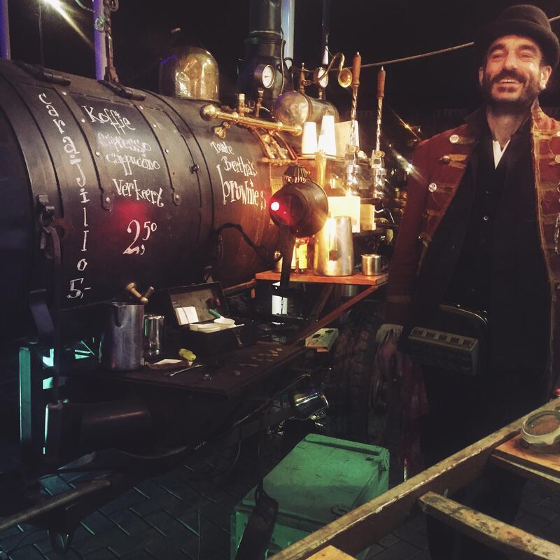 Van verrukkelijke oesters tot aan wafels op een stokje: Ik kan alleen maar concluderen dat het één groot Food Festival was. Vergeef me daarom voor het feit dat ik toch een puntje van kritiek moet leveren; ik miste sfeer in de Europahal. Ik vind deze ruimte in de RAI net iets te groot om dit gevoel voor elkaar te krijgen. Toen ik echter afsloot met een laatste kop koffie bij 2 heren buiten van de fantastische op steenkool gestookt Victoriaans espressoapparaat: Dikke Bertha, gleed dit gebrek aan sfeer al bijna van mij af…