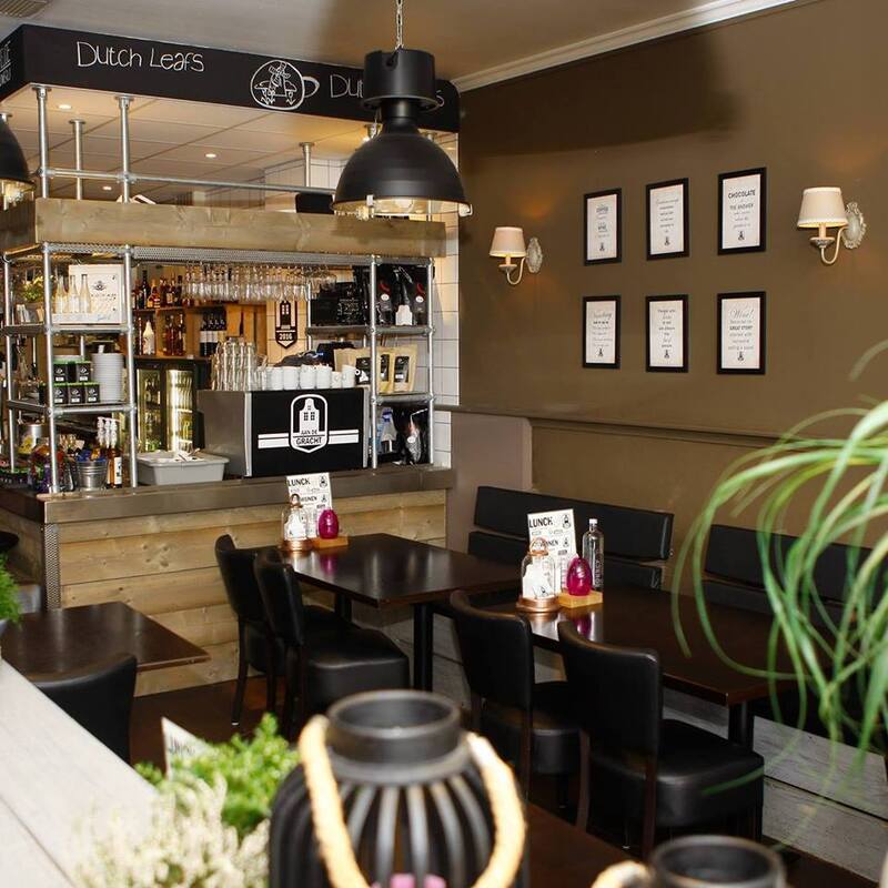 Restaurant Aan de Gracht heeft een warm industrieel interieur. Ze hebben veel gebruik gemaakt van steigerhout en steigermaterialen wat het industrieel maakt, maar door de bruintinten voelt het ook warm en gezellig aan.